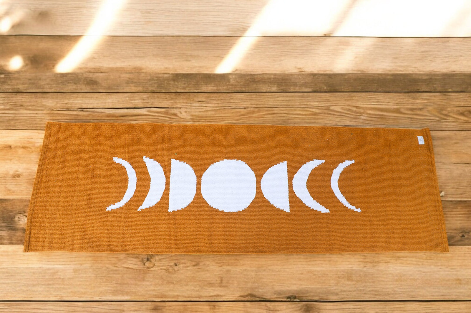 Beautiful Mat, the color is a like burnt orangey rust color and I love the design. It feels better to my feet than the other mat that I have that is not woven. Its beautiful and elevates the space that it is in. Thank you for a beautiful yoga mat.